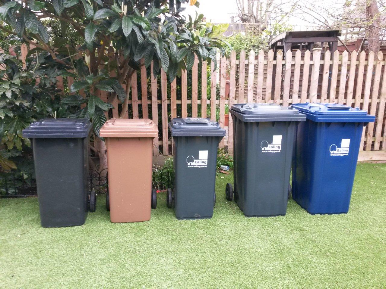 Set of bins in back garden